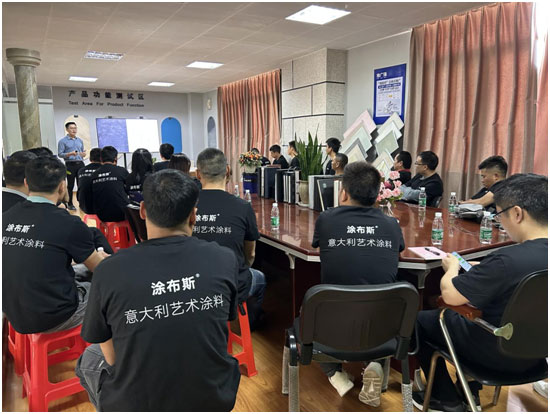 TUBLUCE涂布斯希望打造一支專業(yè)化、職業(yè)化的學(xué)習(xí)型團(tuán)隊(duì)。大會(huì)伊始,涂布斯從品牌升級,到系統(tǒng)地對品牌定位、產(chǎn)品矩陣等進(jìn)行了全方面剖析,從專業(yè)的藝術(shù)涂料產(chǎn)品知識到營銷實(shí)戰(zhàn)策略,再到店面運(yùn)營痛點(diǎn)分析及解決方案等多個(gè)板塊都進(jìn)行了深入淺出的講解。當(dāng)中,既有理論授課,也有案例分享和互動(dòng),讓涂布斯經(jīng)銷商家人們得到一次系統(tǒng)地訓(xùn)練和提升。