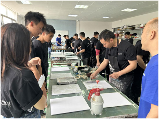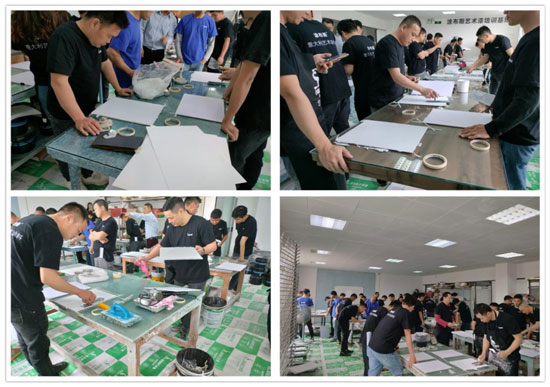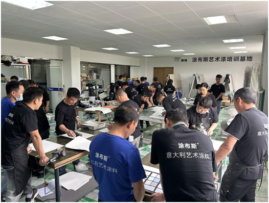 “三分產(chǎn)品,七分涂裝”,其含義不言而喻。涂料是半成品,需要涂裝工根據(jù)不同的工藝進(jìn)行施工,從而呈現(xiàn)出不同的施工效果。本著“學(xué)之能用、用之能勝”的教學(xué)宗旨,TUBLUCE涂布斯品牌產(chǎn)品應(yīng)用部經(jīng)理以理論與實(shí)操相結(jié)合,遵循“易施工、出效果”的工藝培訓(xùn)理念,將涂布斯當(dāng)前系列產(chǎn)品的特色工藝傾囊相授,加碼賦能終端。